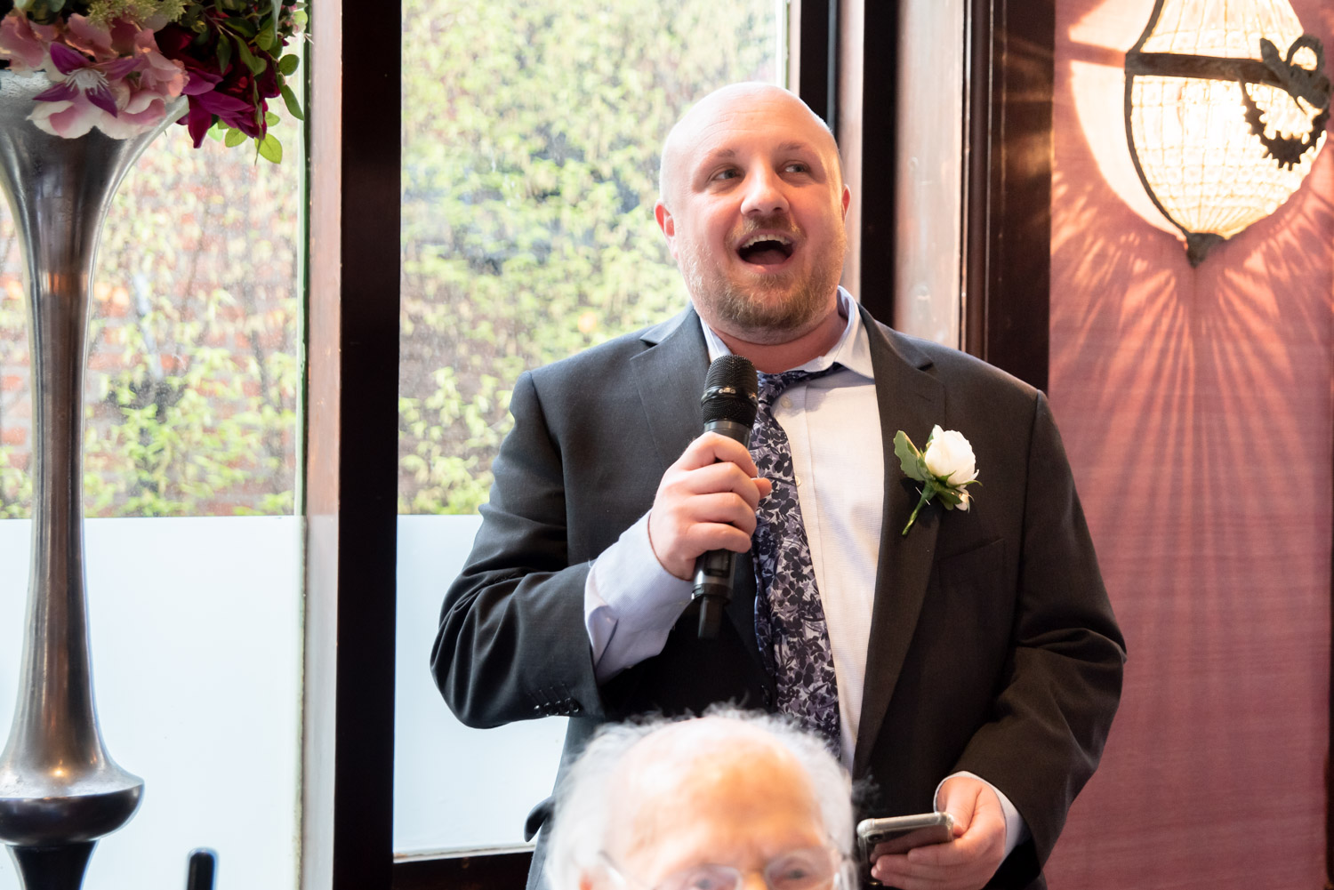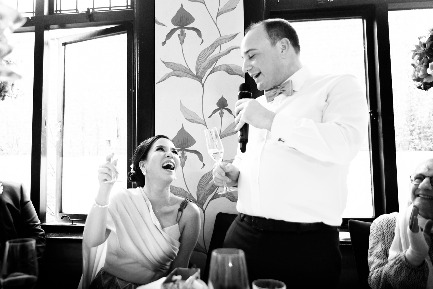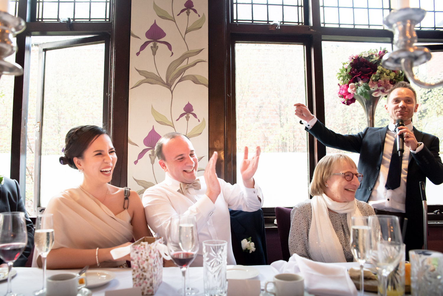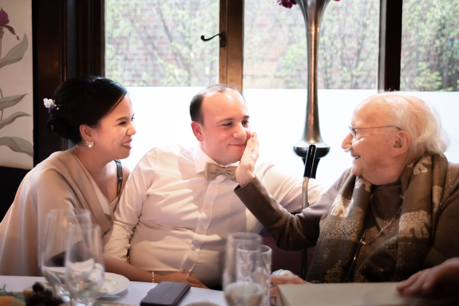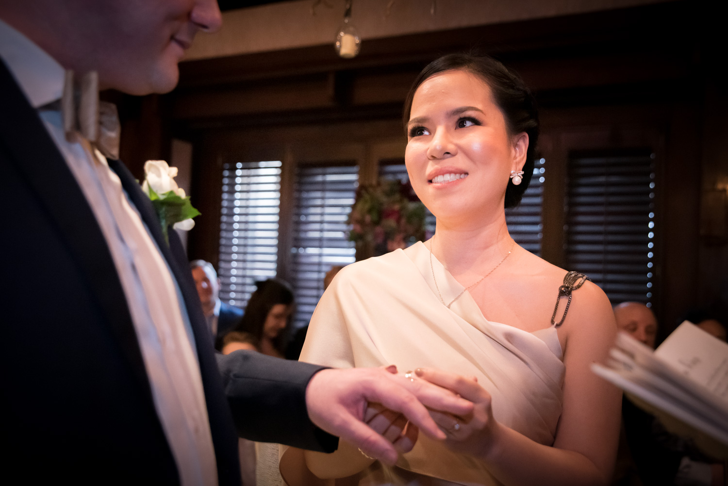 Being already legally married, Aum and Dodd chose to have Charlotte Simpson as their celebrant for a truly personalised ceremony. Charlotte told the story of Aum and Dodd’s first date and how the groom proposed several times before Aum realised he wasn’t joking! She also mentioned how the groom’s grandma Faye had had an important part in the proposal. After Faye realised that Dodd didn’t have a ring to propose with, she gave him one of her own. There was laughter across the whole room!